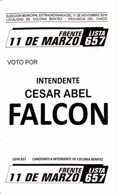ALIANZA FRENTE 11 DE MARZO S/OFICIALIZACIÓN DE CANDIDATO COLONIA BENÍTEZ |