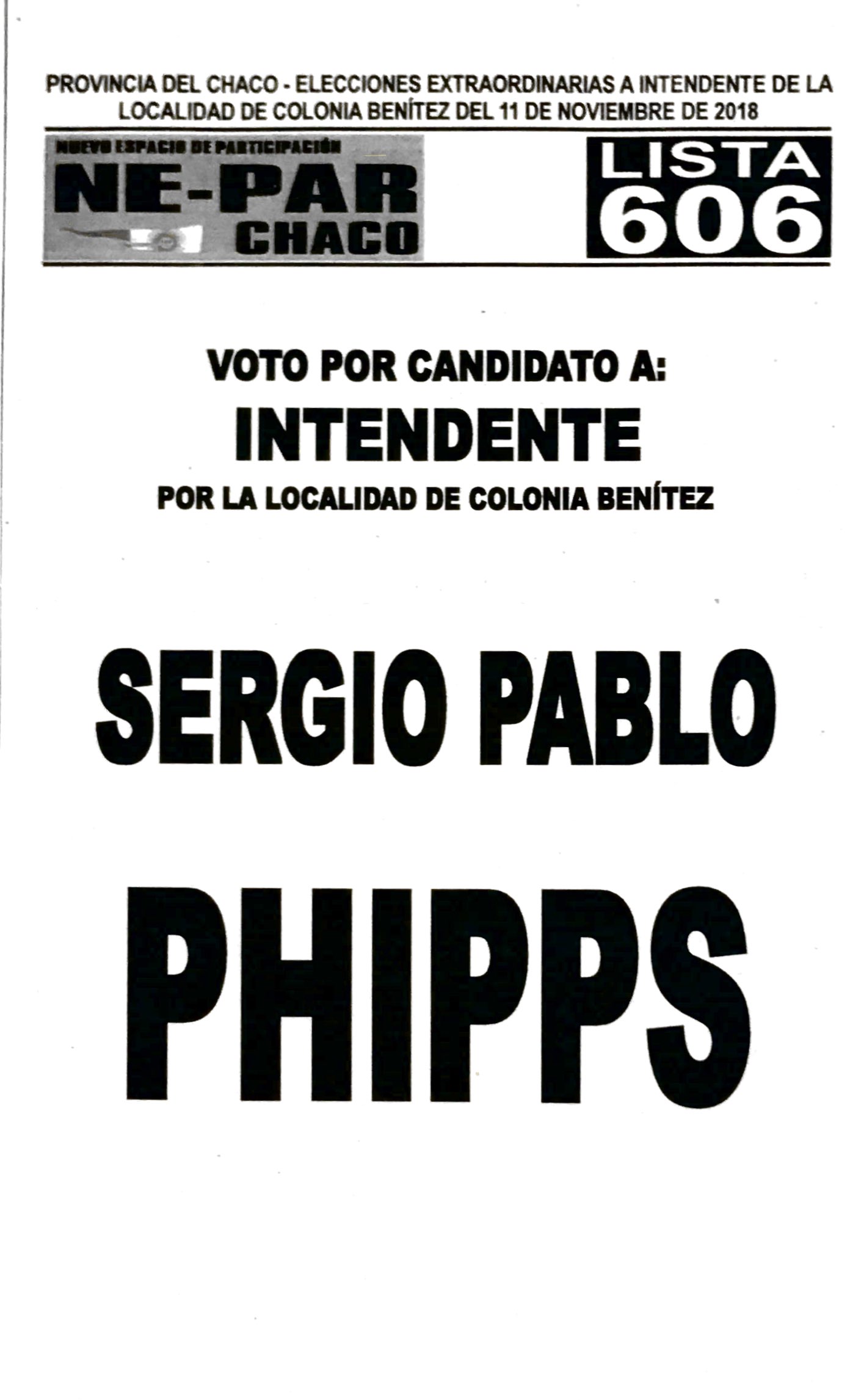 NUEVO ESPACIO DE PARTICIPACIÓN - NEPAR - S/OFICIALIZACIÓN CANDIDATO COLONIA BENÍTEZ |