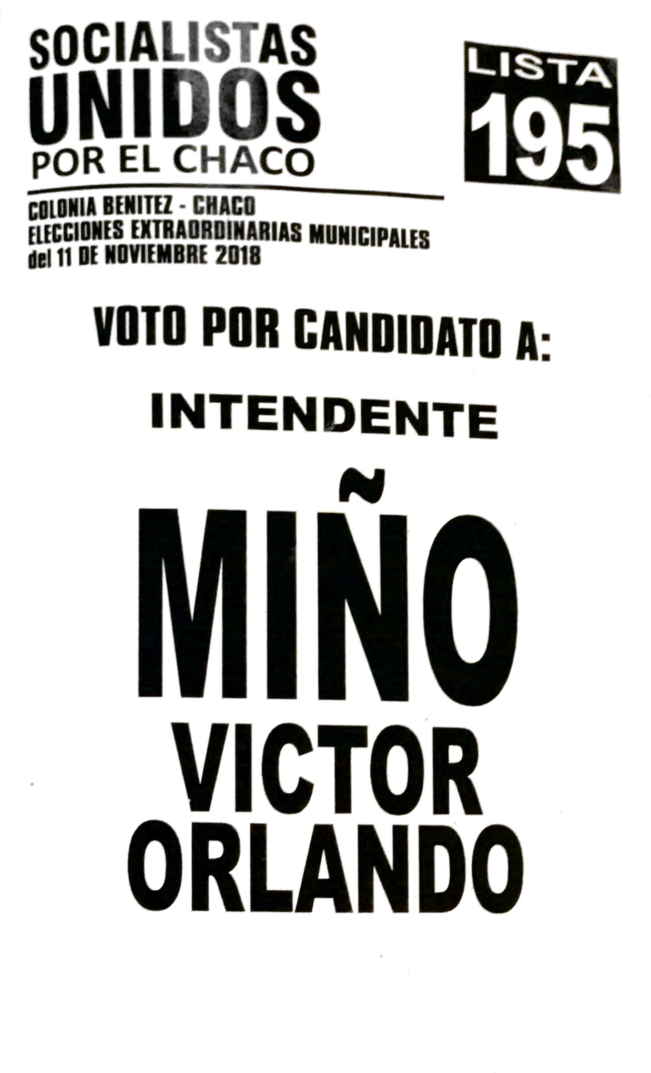 PARTIDO SOCIALISTAS UNIDOS POR EL CHACO S/OFICIALIZACIÓN DE CANDIDATO COLONIA BENÍTEZ |